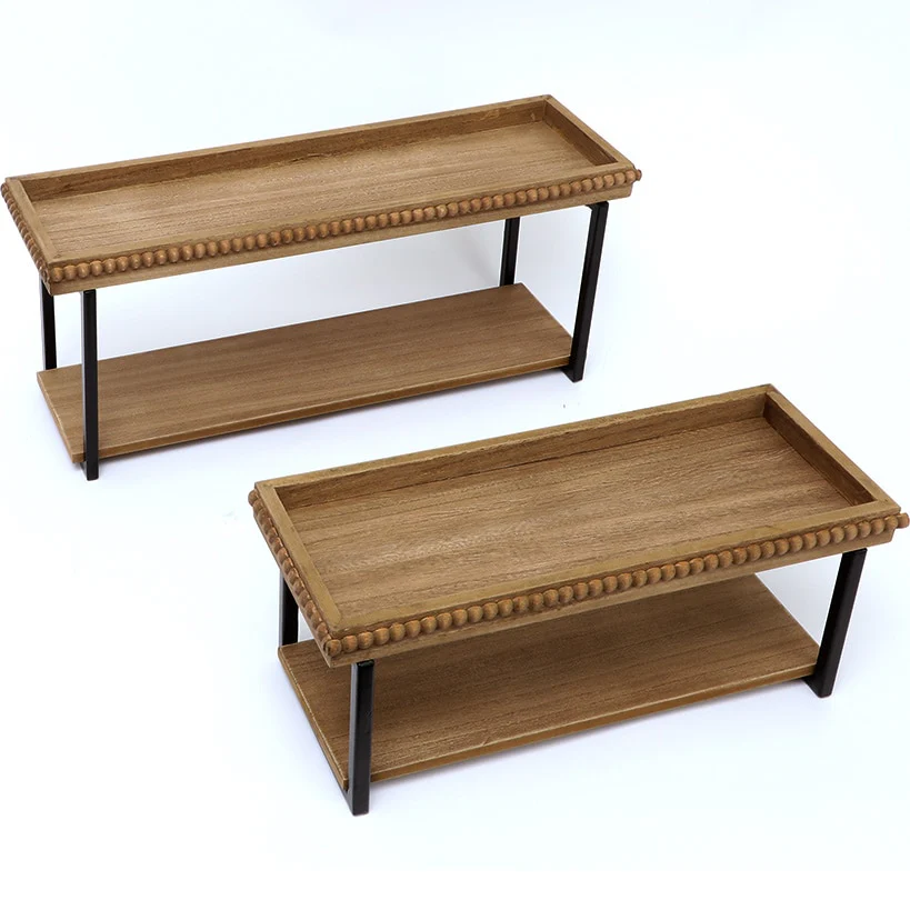 Add style and functionality to your home with this Set of 2 Beaded Wall Shelves! Featuring elegant bead detailing along the front and sides, these shelves create a charming frame to showcase your favorite decor, even when viewed from an angle. Perfect for your living room, dining area, or entryway, the set includes a small and large shelf.