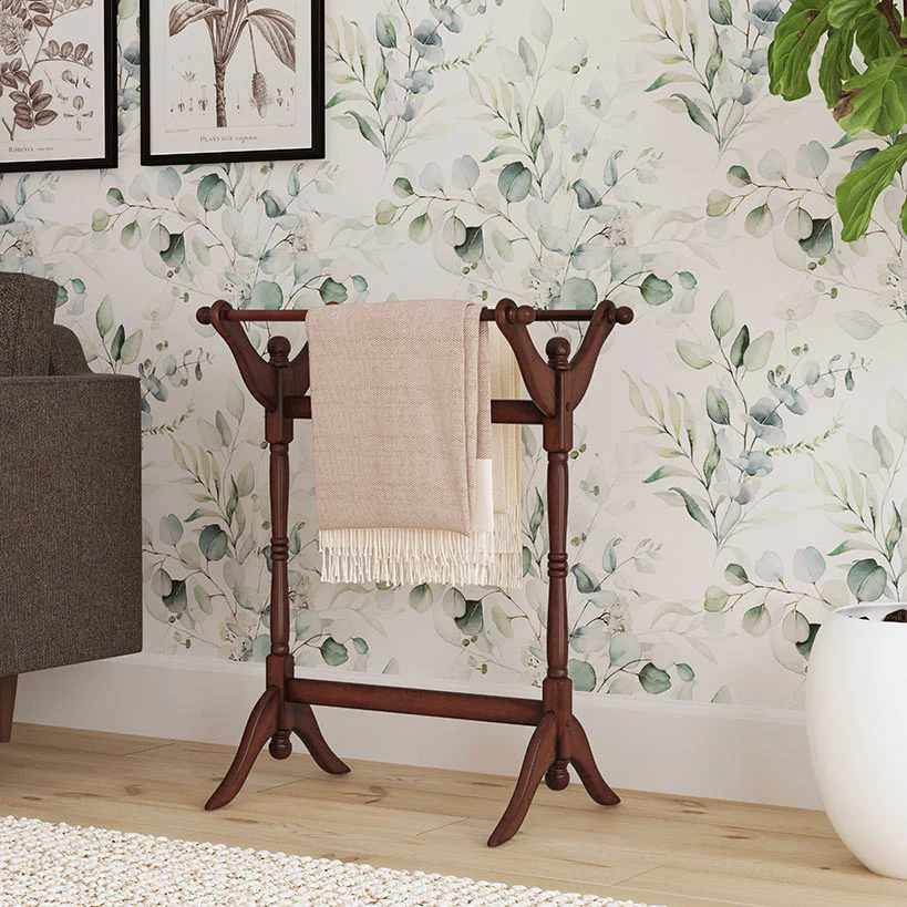 The Boone Heirloom Blanket Rack offers a beautiful way to organize and showcase your favorite blankets, quilts, and throws. Available in Cherry and Oak finishes, it's rafted with attention to detail, its classic 18th-century-inspired design complements a variety of decor styles, from traditional to modern. Freestanding blanket rack is perfect for bedroom organization or as a stunning quilt display in living areas. Each sturdy crossbar holds up to 20 pounds.