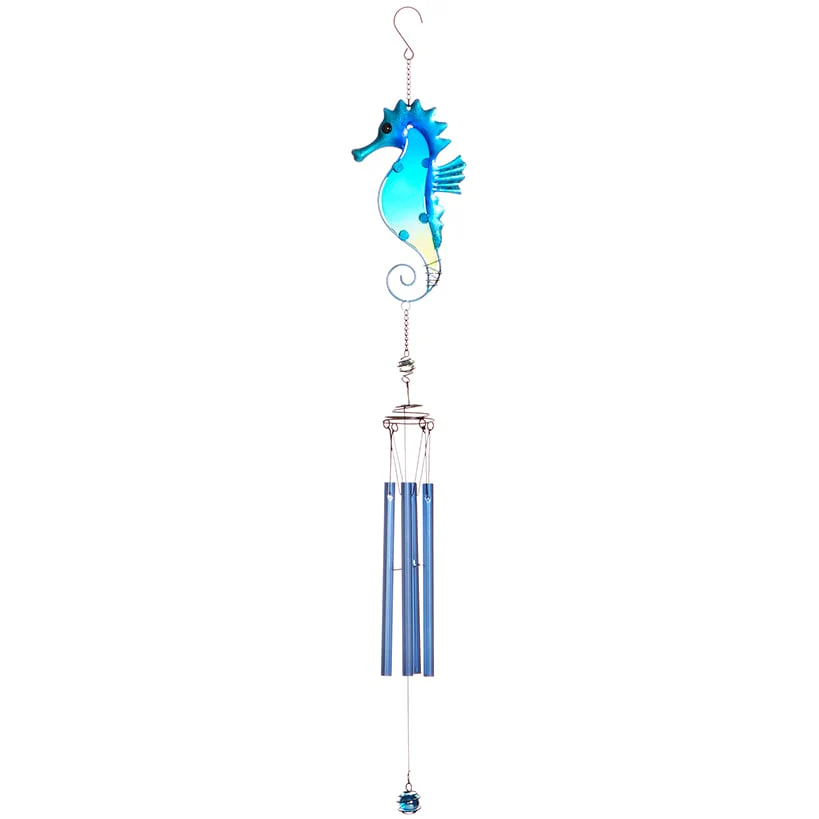 Coastal Windchime Sailboat or Seahorse brings a breezy beachside feel to your outdoor spaces. Each coastal windchime features melodic metal chimes that create a soothing sound with every breeze. Topped with an iridescent ocean‑inspired icon, it adds a charming touch to porches or patios. This beachside décor piece arrives ready to hang for an effortless outdoor accent.