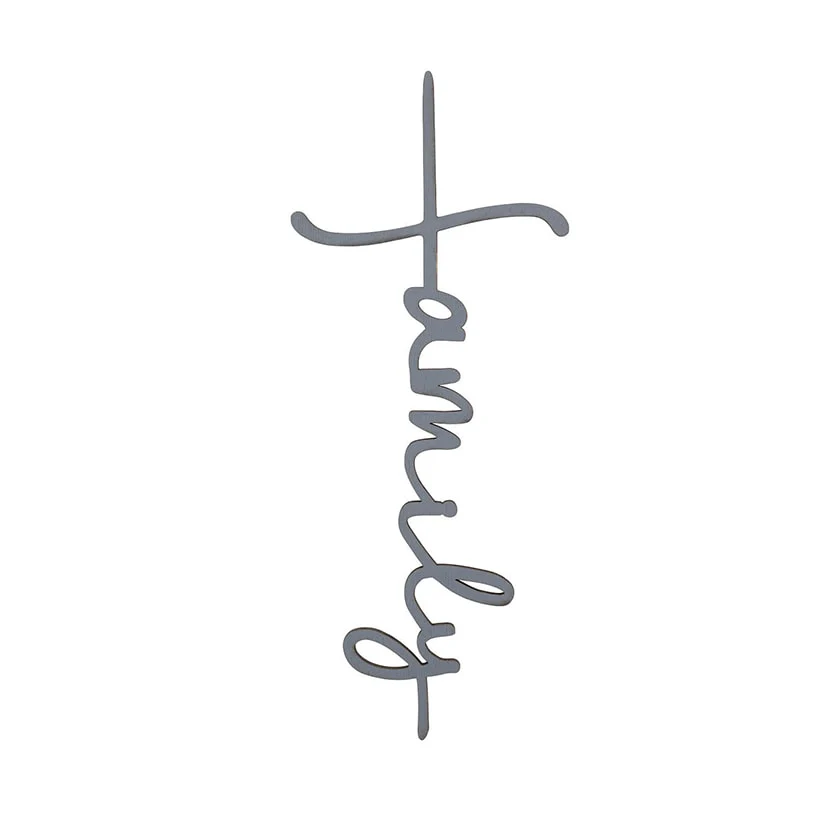 The Family Cross Wood Plaque adds a touch of inspirational wall decor to any room in your home. This meaningful family script cross features a stylish silhouette that celebrates faith and heritage in one elegant design. This modern farmhouse plaque is available in your choice of Gray or Black to complement your existing interior style. It serves as a beautiful religious family gift for a loved one or a heartwarming focal point for your own living space.