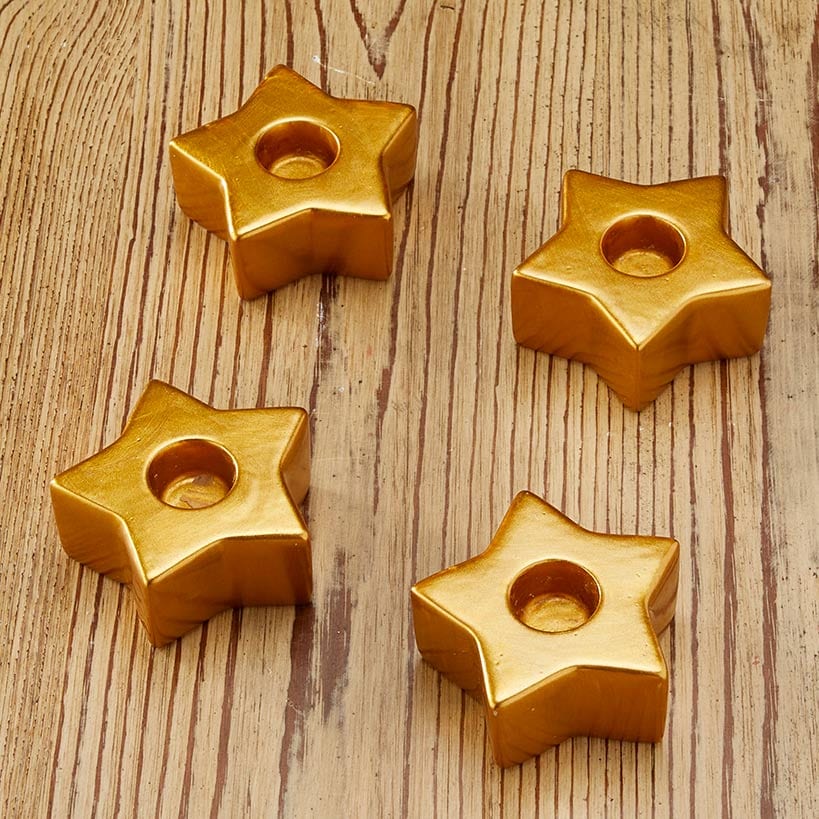 Set of 4 Star-Shaped Gold Taper Candleholders