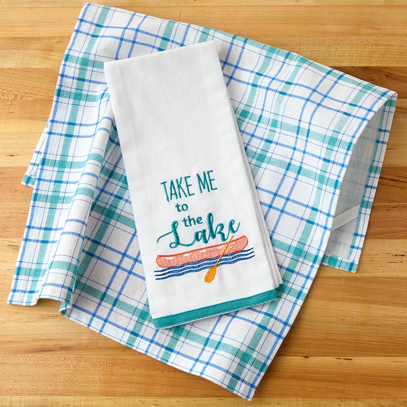 Lake Themed Embroidered Kitchen Towels, Set of 2