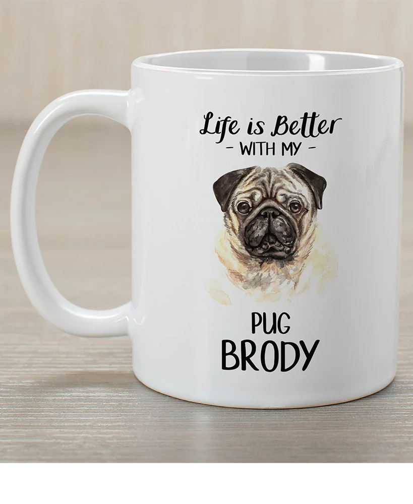 Show love for your pet with the Personalized Dog Breed T-Shirt or Coffee Mug. Each features the saying "Life Is Better with My (Breed and Name)". Personalize the mug or T-shirt with your dog's name, up to 12 characters, all caps. Then choose dog breed from drop-down menu. Sorry, mail/fax orders are not accepted on personalized items; please order via web or phone agent. This item cannot be shipped to APO/FPO addresses.