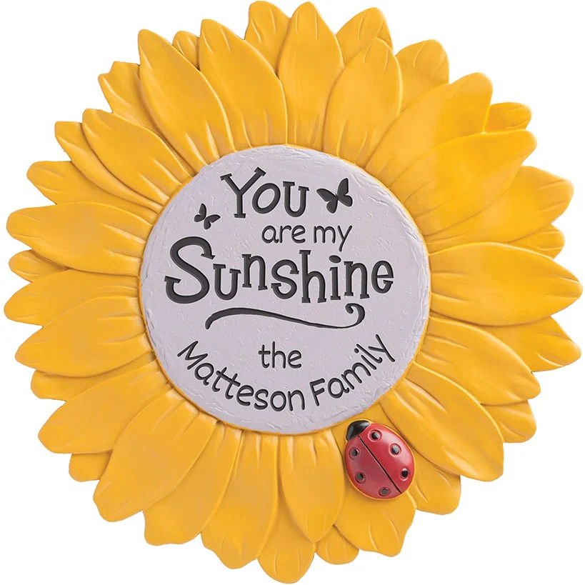 Welcome visitors to your favorite spot with a Personalized Sunflower Garden Stone. Cheerful flower reminds all who see it, "You are my sunshine." Add your own name or message with up to 24 upper- and lowercase letters. Sorry, mail/fax orders are not accepted on personalized items; please order via web or phone agent. This item cannot be shipped to P.O. boxes and APO/FPO addresses.