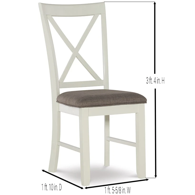Add farmhouse-inspired warmth to your home with this Set of 2 Jane Side Chairs. Each chair features a stylish X-back and a cozy padded seat in rustic taupe that withstands everyday wear and tear. You can choose between the Vanilla White or Grey finishes to perfectly complement your existing decor. These elegant pieces pair beautifully with a matching dining table to create a welcoming atmosphere for all your family gatherings.